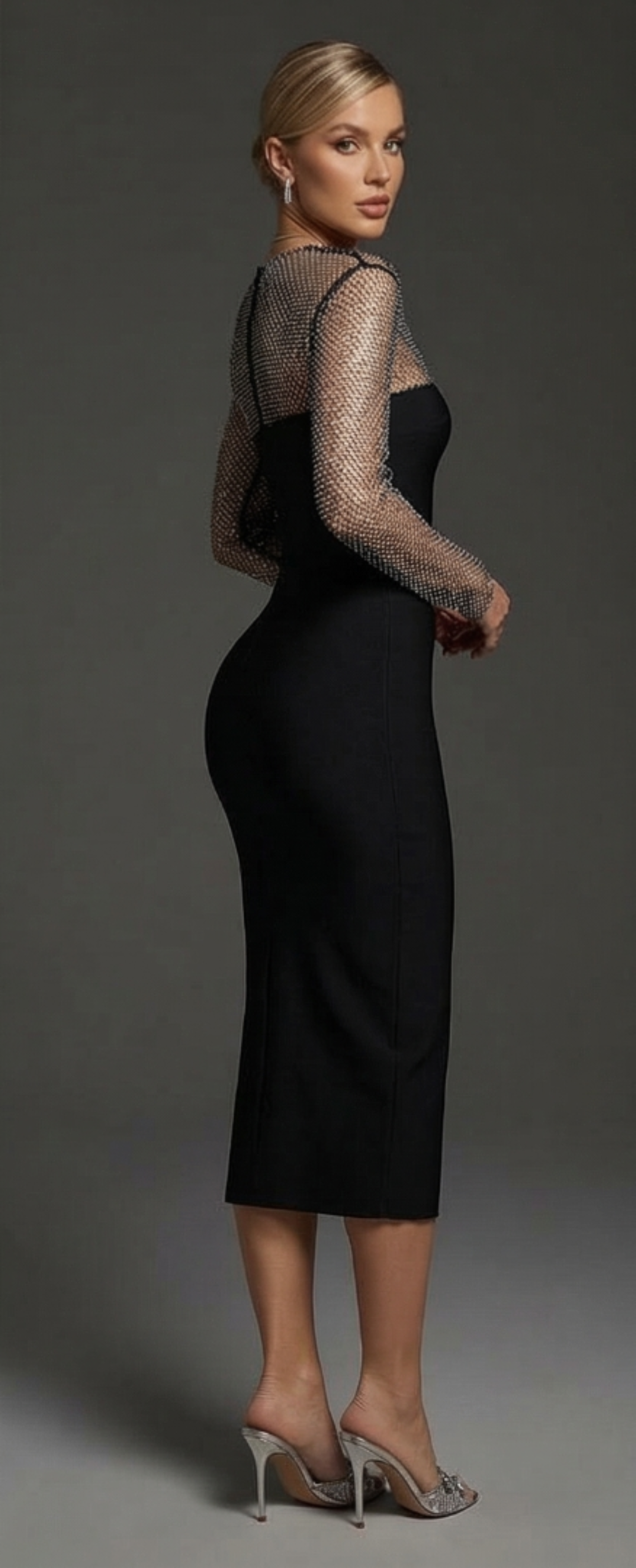 Brilla y deslumbra con el Vestido Midi Ruzevich de Manga Larga con Cristales. Este impresionante diseño presenta mangas largas y un ajuste tipo bandage que se adapta perfectamente a la silueta, realzando las curvas de forma elegante. Los delicados cristales que adornan el vestido aportan un toque de glamour y sofisticación, convirtiéndolo en la elección perfecta para destacar en cualquier evento especial y sentirte segura, radiante y espectacular.